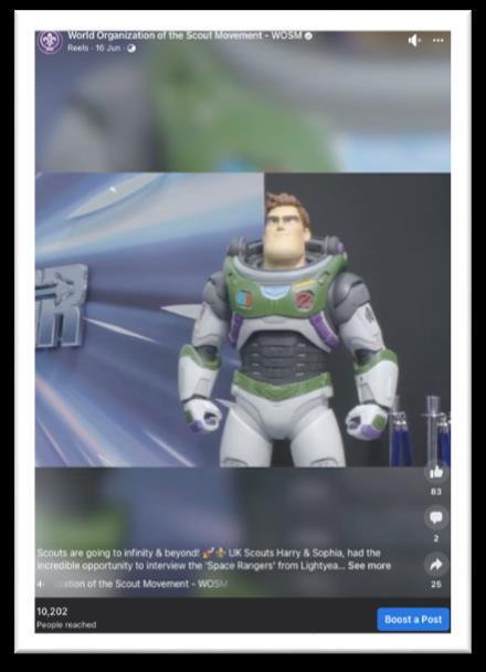 ▪ Aimer et commenter d'autres publications dans votre domaine (par exemple, des groupes scouts, du Scoutisme mondial, d'autres Organisations Scoutes Nationales, de partenaires, etc.)