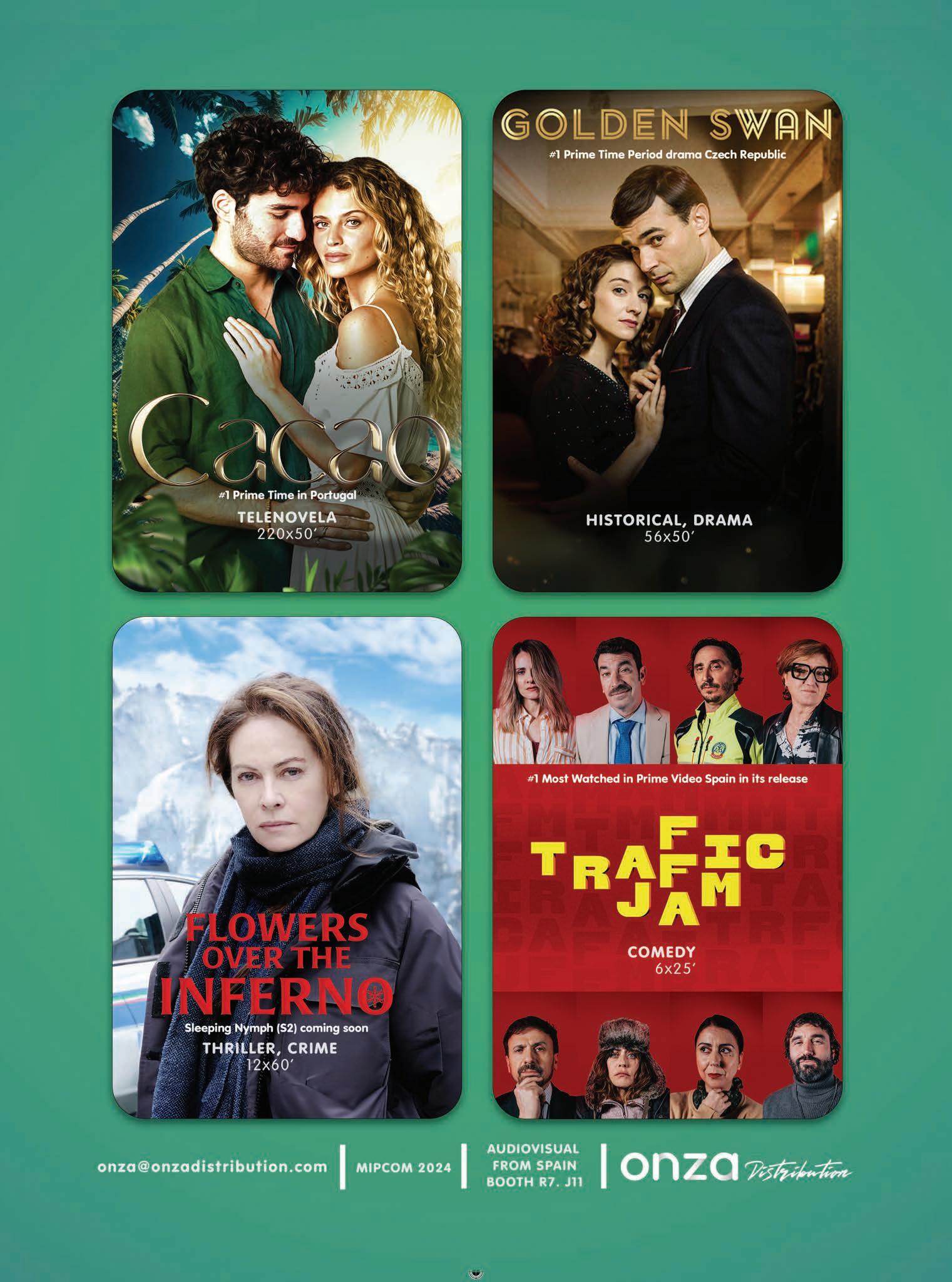 Onza Distribution’s Cacao follows a young girl from a Portuguese family who makes chocolates on a cocoa farm in Brazil. Her dream to go abroad and become a pastry chef seems out of reach, but everything changes when her real father is revealed. The comedy Traffic Jam, which has second and third seasons in development, is also on offer. “The show brilliantly explores a wide range of topics, highlighting how, on the road, we are all equal,” notes Béatrice Nouh, head of sales. “We want to promote Traffic Jam for adaptations in other territories.” In Flowers Over the Inferno, criminologist Teresa Battaglia leads a team in the investigation of unsolved crimes while dealing with the first signs of Alzheimer’s disease, intensifying her personal conflicts.