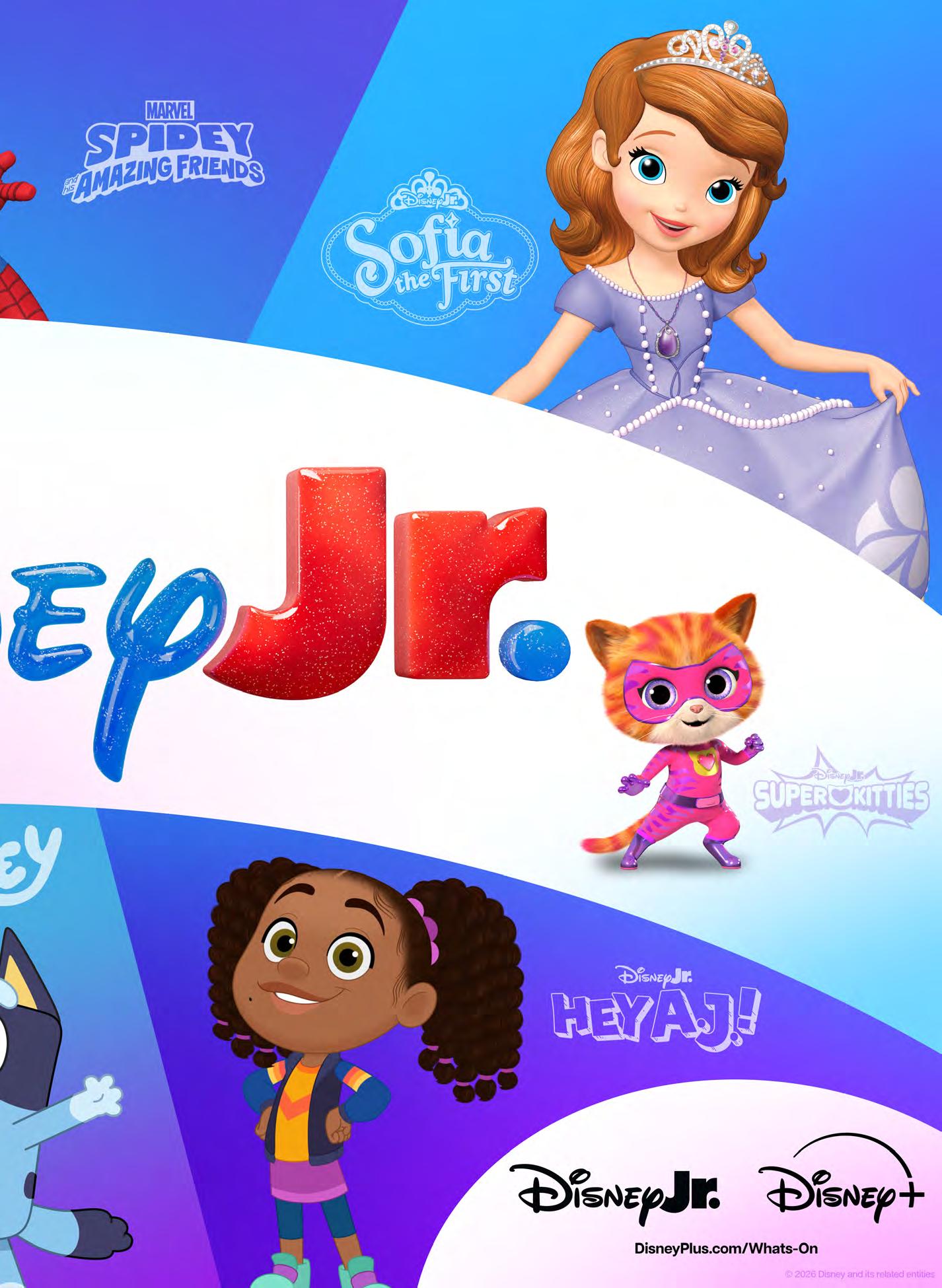 This dedication to serving relevant and meaningful storytelling is paying off. According to Nielsen, in 2025, Disney Jr. owned three of the top five preschool streaming series: Bluey , Marvel’s Spidey and his Amazing Friends and Mickey Mouse Clubhouse . Bluey , in fact, was 2025’s number one moststreamed program in the U.S. for the second year in a row. Since launching in 2011, Disney Jr. has also powered five billion-dollar retail brands— Disney Jr. Mickey , Disney Jr. Minnie , Sofia the First , Doc McStuffins and Marvel’s Spidey and his Amazing Friends , with over $20 billion in global retail sales.