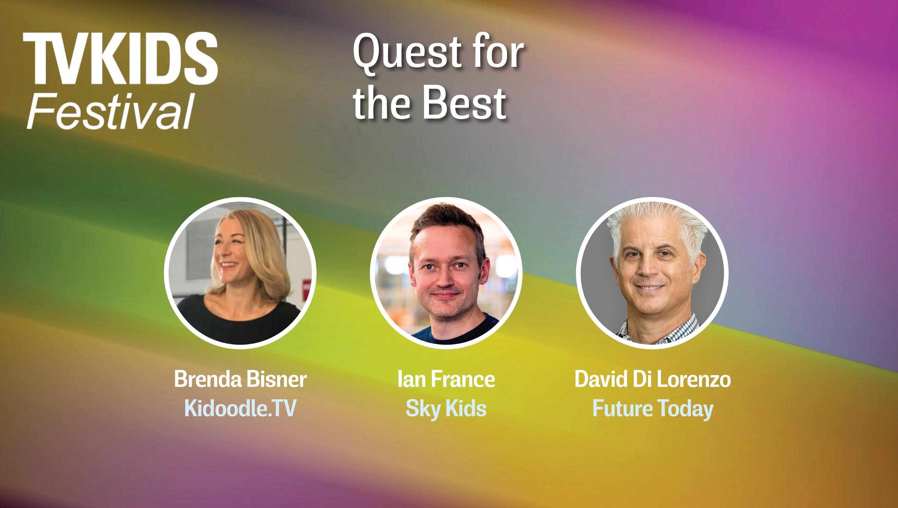 QUEST FOR THE BEST The sixth edition of the TV Kids Festival kicked off with our signature session on acquisition and programming strategies, this time featuring Sky Kids’ Ian France, Kidoodle.TV’s Brenda Bisner and Future Today’s David Di Lorenzo.