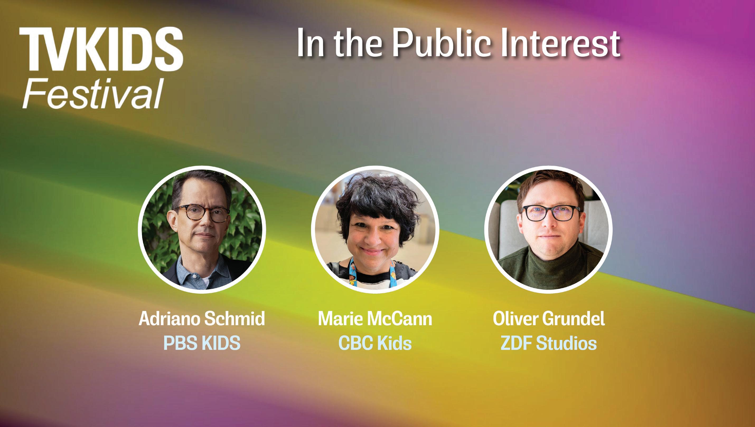 IN THE PUBLIC INTEREST PBS KIDS’ Adriano Schmid, CBC Kids’ Marie McCann and ZDF Studios’ Oliver Grundel came together to discuss the state of public broadcasting from production, distribution and programming perspectives.