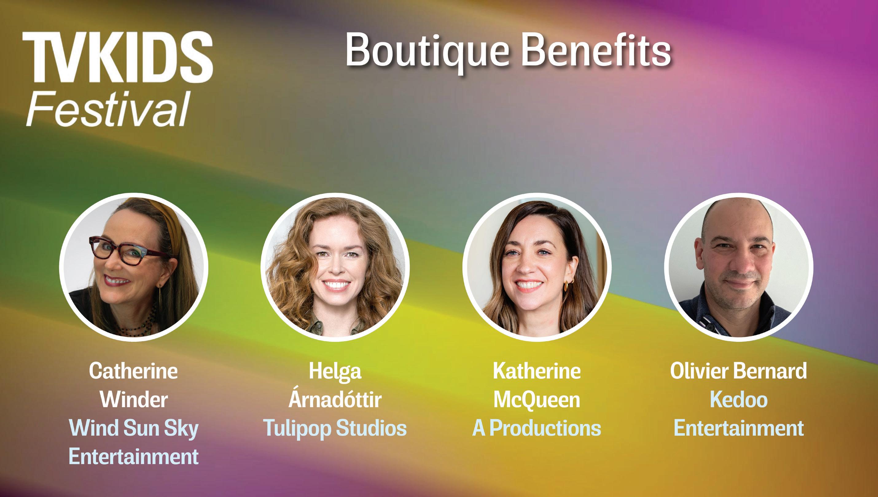 BOUTIQUE BENEFITS Kedoo Entertainment’s Olivier Bernard, Tulipop Studios’ Helga Árnadóttir, A Productions’ Katherine McQueen and Wind Sun Sky Entertainment’s Catherine Winder shared their insights on managing independent producers and distributors.