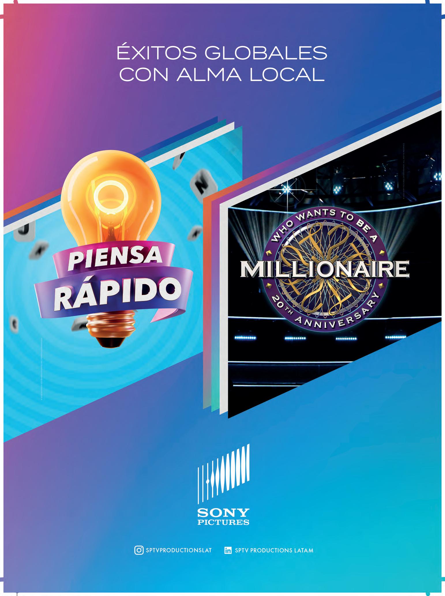 Sony Pictures Television (SPT) destaca Piensa rápido, un show de concursos mexicano donde dos equipos compiten en rondas de preguntas y adivinanzas de cultura general, buscando ganar dinero en efectivo. Mientras, Señoras mal es una serie que rinde homenaje a las mujeres treintonas que se rebelan contra las expectativas sociales. “Muchas de nuestras series han funcionado muy bien internacionalmente, especialmente en el mercado hispano de Estados Unidos”, comenta John Rossiter, VP ejecutivo, distribución y cadenas, América Latina de SPT. “Los compradores quieren contenidos con ideas frescas, proyectos que puedan respaldar y comercializar de manera efectiva”. Casados con hijos, adaptación de Married… with Children, también forma parte de la oferta de la compañía.