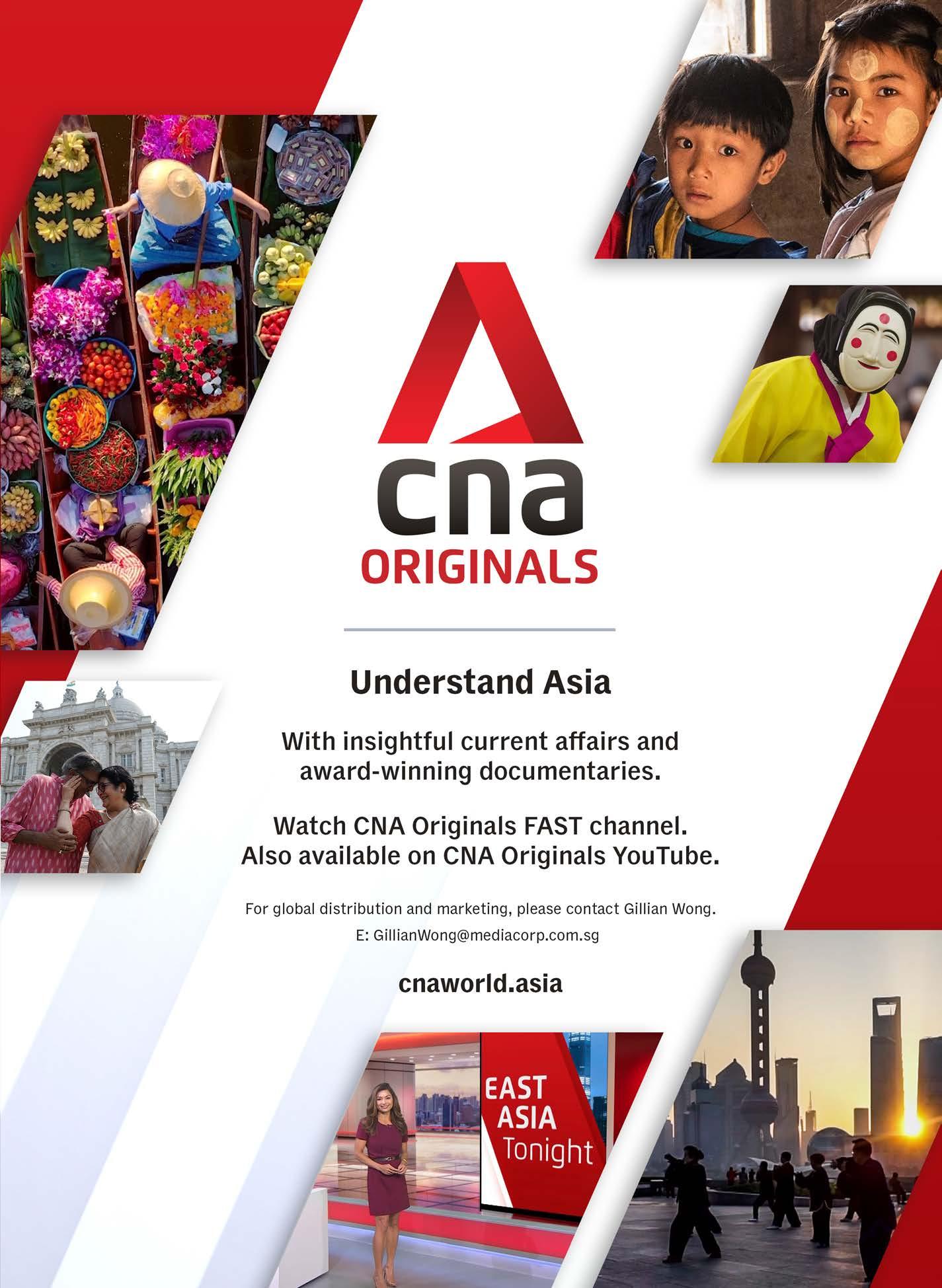 CNA Correspondent (Current affairs, 60 min. eps.) CNA’s network of correspondents around the globe shine a light on stories from their corners of the world—from groundbreaking events to up-andcoming trends.