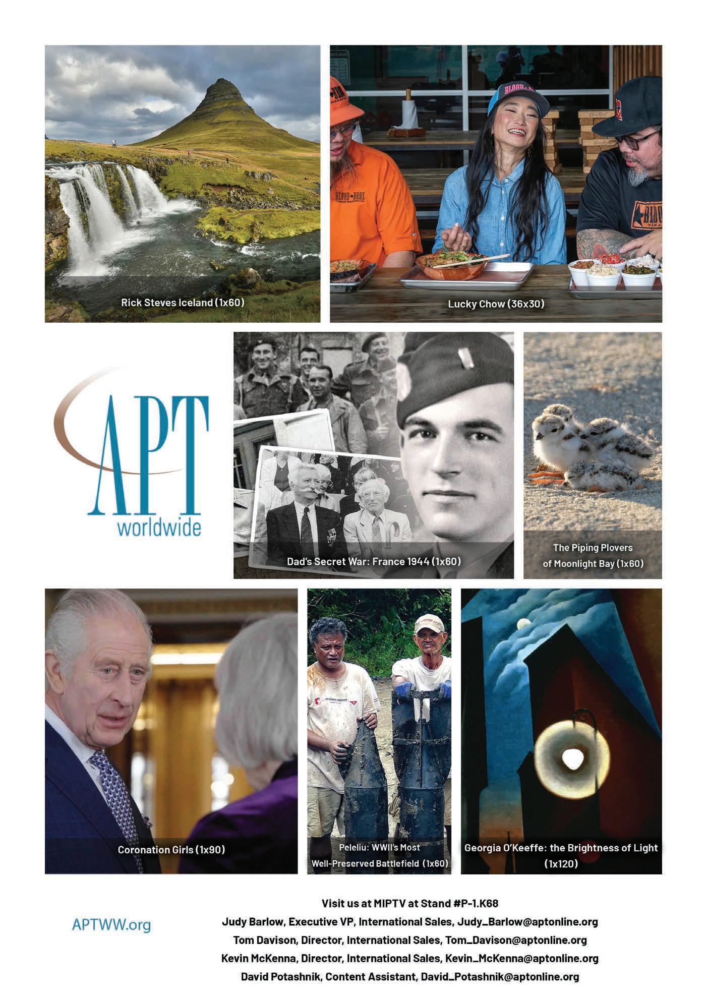 APT Worldwide’s Georgia O’Keeffe: The Brightness of Light, from Academy Award-winning director Paul Wagner, is “a fascinating exploration of the life and work of renowned artist Georgia O’Keeffe,” says Judy Barlow, VP of business development. The hour-long documentary Coronation Girls looks at a group of Canadian women who attended Queen Elizabeth II’s historic coronation in 1953. Some 70 years later, the ladies reunite and receive a surprise visit from King Charles III. The Cure for Hate: Bearing Witness to Auschwitz profiles Tony McAleer, a former skinhead and Holocaust denier who travels to Auschwitz on a personal journey of atonement, exploring the conditions that allow people to join extremist groups. APT Worldwide is also offering a collection of Rick Steves travel specials.