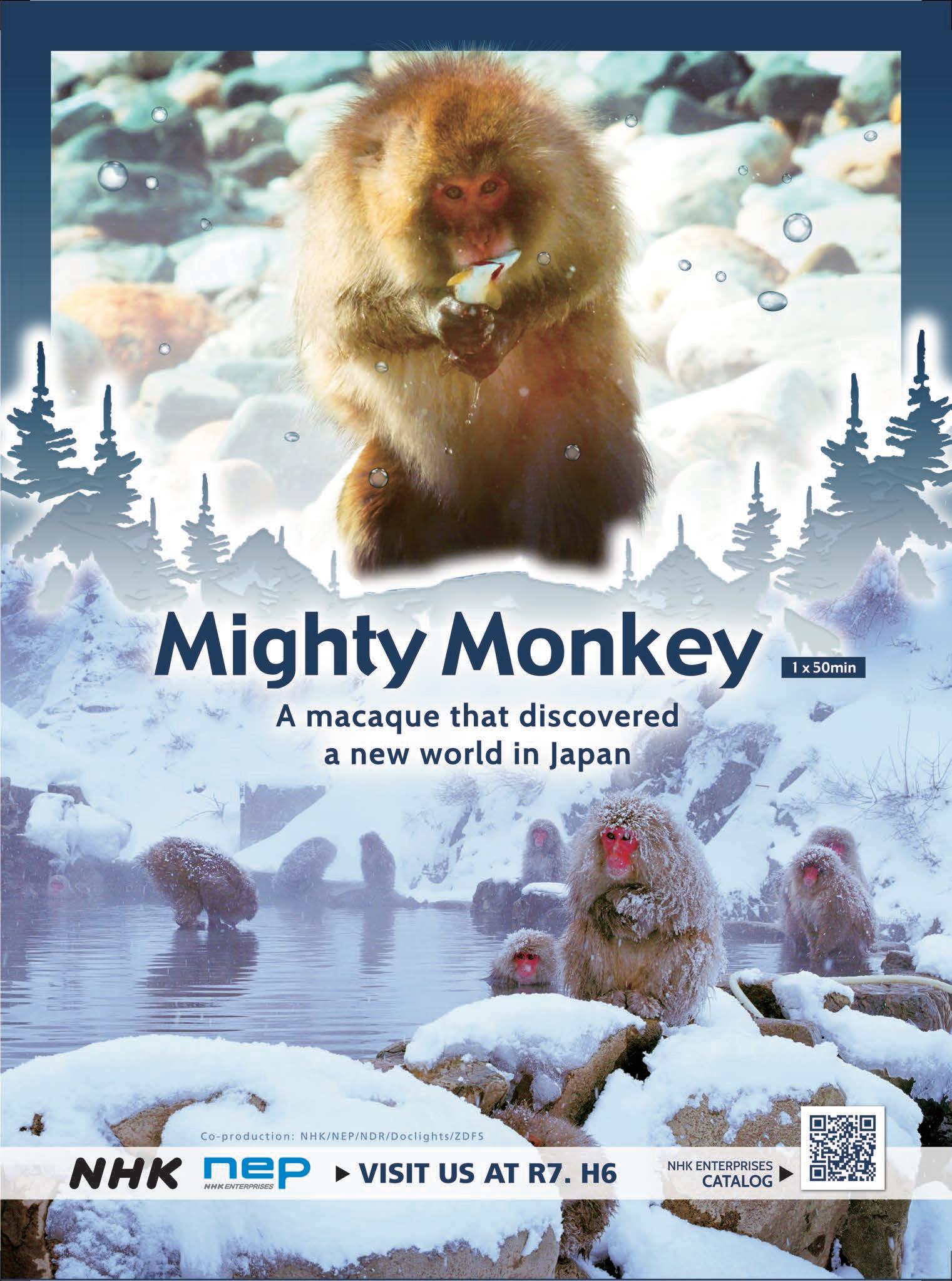 NHK Enterprises, for example, arrives at MIPCOM with Mighty Monkey (w.t.), coproduced with NDR, Doclights and ZDF Stu dios. “Shot in beautiful 4K UHD, the cameras travel through Japan to capture unique monkey groups displaying different localized food habits, including world-first footage of monkeys catching live fish as well as how such new behaviors spread among individuals in the pack,” says Akiko Nakano, senior manager of content sales.