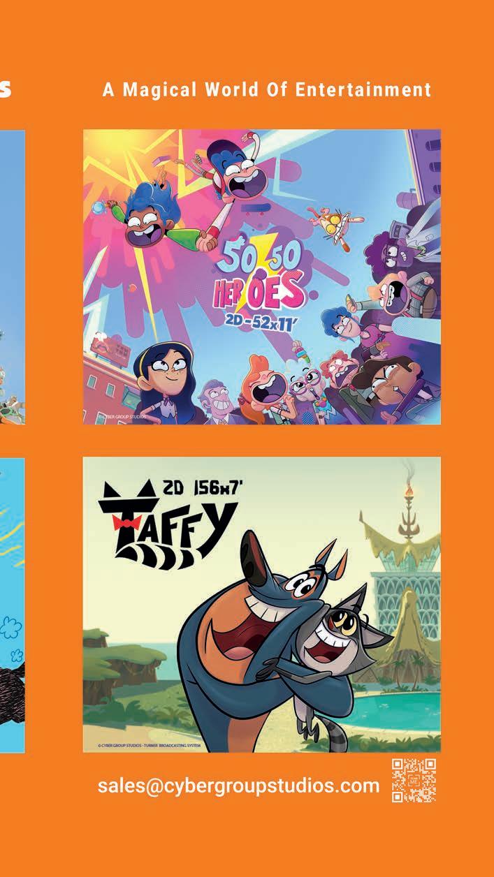 50/50 Heroes: 52x11 min., kids/comedy/adventure; Droners: S1-2 52x22 min., kids/adventure/comedy; Taffy : S1-2 156x7 min., kids/family/cartoon/comedy; Gigantosaurus: S1-3 156x11 min./78x26 min., preschool/comedy/adventure; Zak Jinks: S1-2 104x13 min., kids/adventure/comedy; Nefertine on the Nile : 52x11 min., preschool/animation/comedy; Squared Zebra: 78×7 min., preschool/comedy/edutainment; Chloe’s Closet: 104x13 min., preschool/edutainment; The Case (La Custodia): 1x40 min., family/animation; Alpha & Omega: 3x45 min. specials, kids/comedy/adventure.