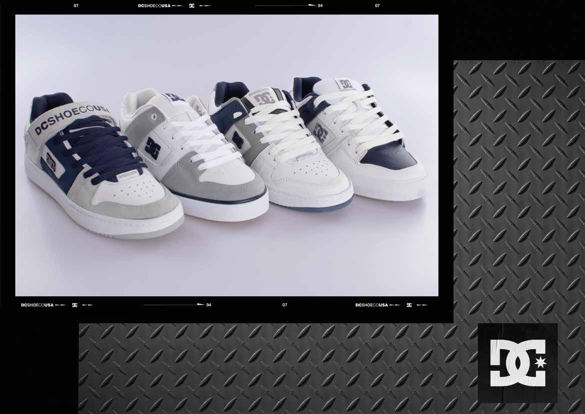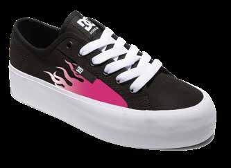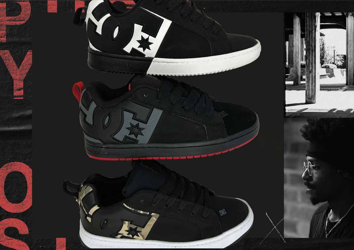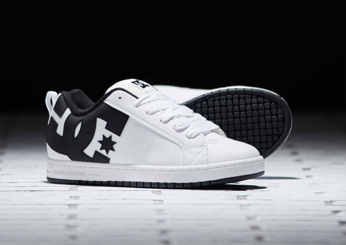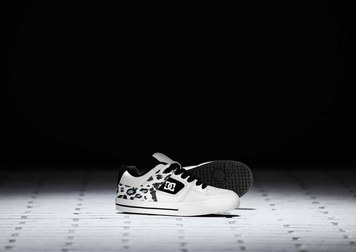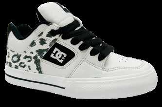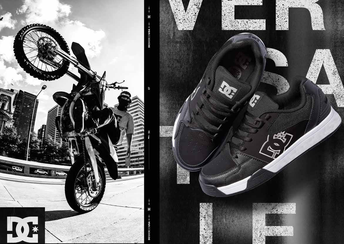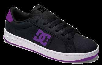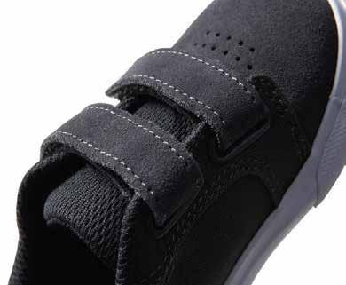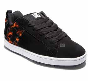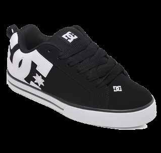 Capellada de S intético o Nobuck + Aju s te con velc r o + For r e r ía li v iana e n le n g u eta + Es puma y C u ello co n e s puma acolchada para máximo co n for t y s opo r te + D s e ñ o Pill P atte r n de DC en pisada + Nue v a s uela Cup s ol e co n co s t u ra