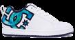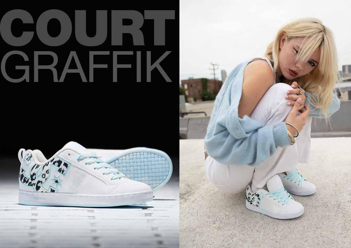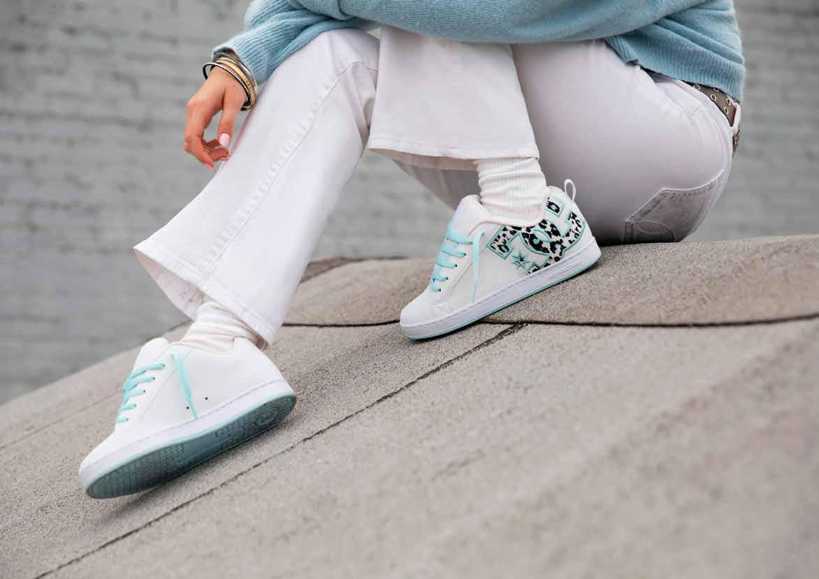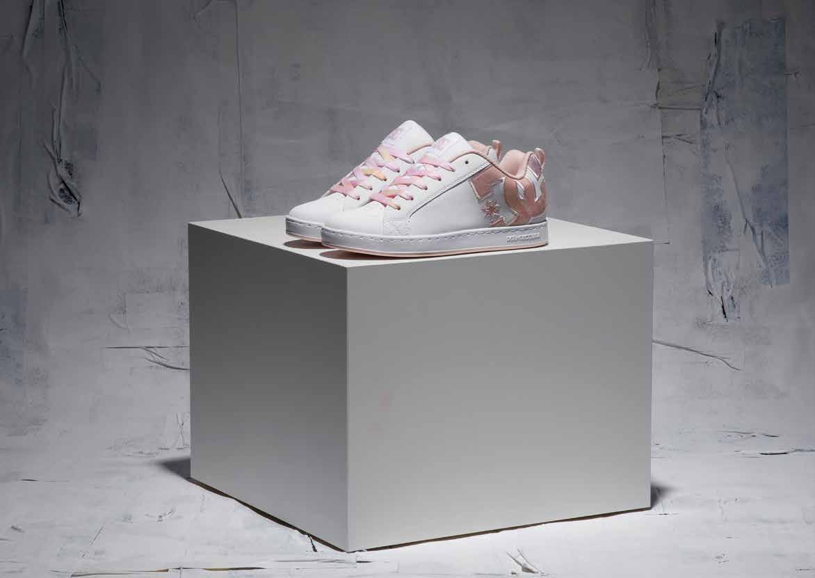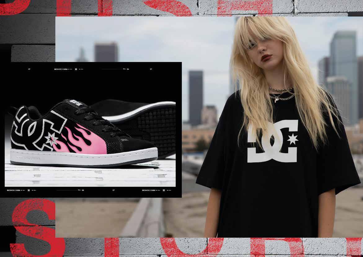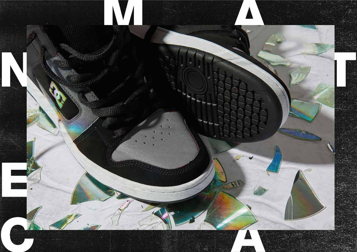 Capellada de S intético o Nobuck + Aju s te con velc r o + For r e r ía li v iana e n le n g u eta + Es puma y C u ello co n e s puma acolchada para máximo co n for t y s opo r te + D s e ñ o Pill P atte r n de DC en pisada + Nue v a s uela Cup s ol e co n co s t u ra