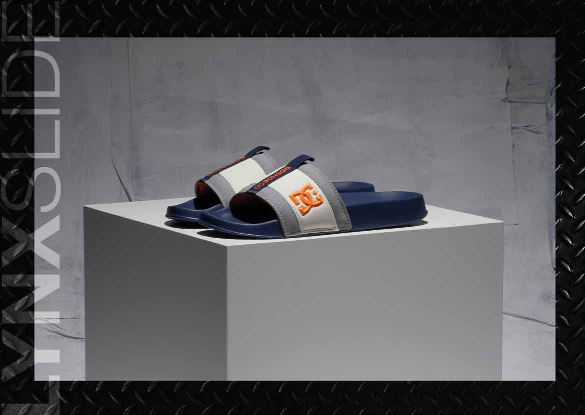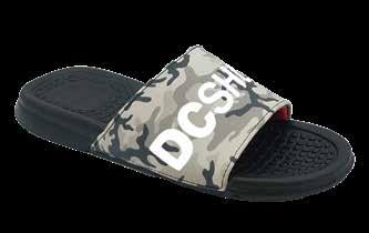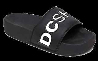CA R ACTE RÍS T I CA S : Sa n dalia con capellada de s intético, for r e r ía suave y espu m a q u e oto r g a un mayo r confort Logo de DC en alta f r ecue n cia. Suela esta m apada d e PVC con pisada antidesliza n te