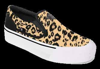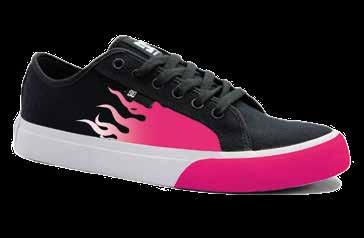 Calzado cas u al + Capellada de Desca r n e v ac un o y textil de algodo n + O jalillos metálicos + Con s trucción v u lcanizada que ge n era mejo r se n sación de tabla + P isada de cauc h o v u lca n izada q u e of r ece grip a l a ve z que es r esiste n te a la abra s ió n + P ill Patte r n de D C en pi s ada