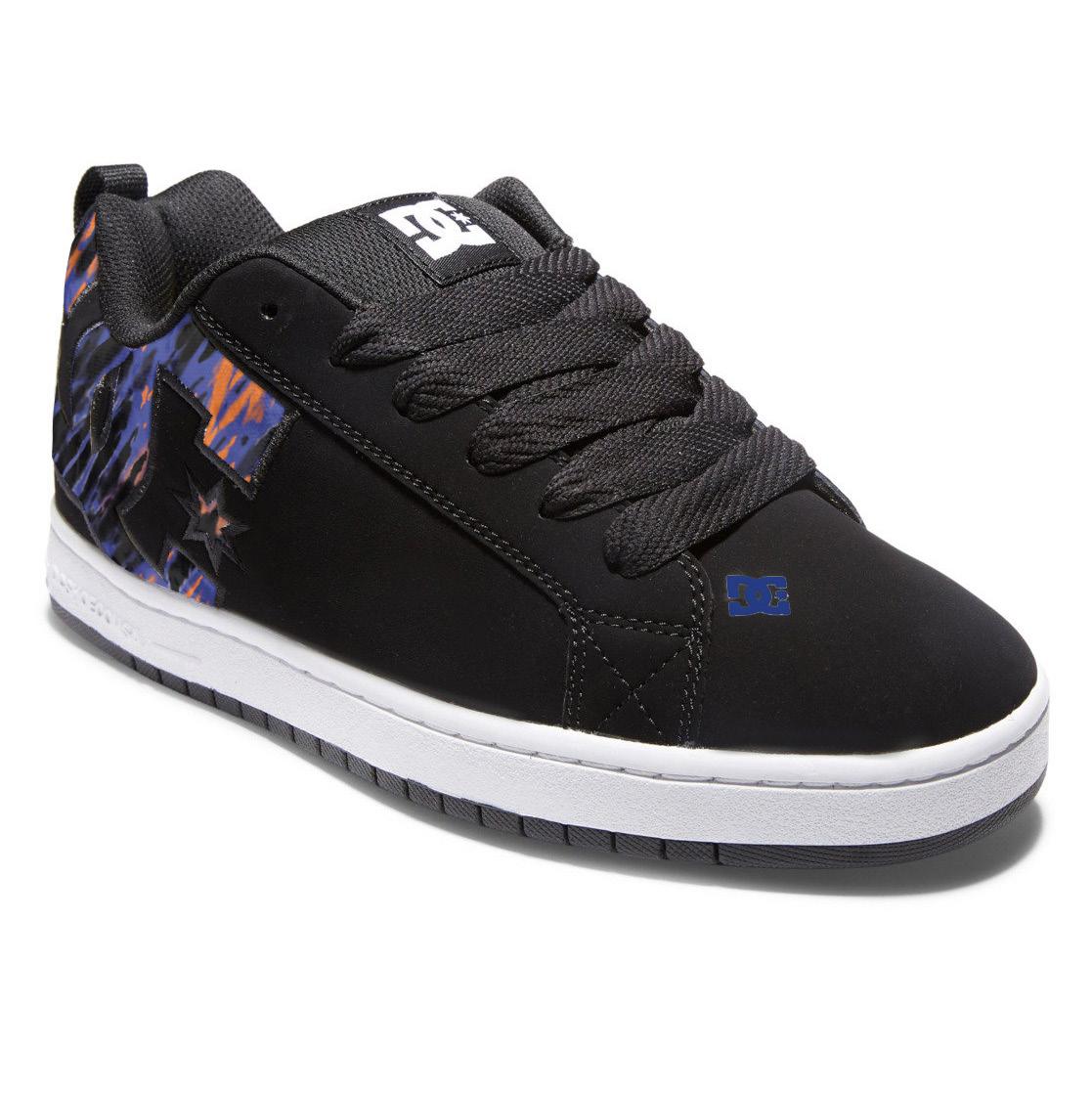 Capellada textil sublimado + Logo lateral en relieve + Ojalillos metálicos + Construcción vulcanizada + Suela de caucho resistente a la abrasión + Diseño de pisada “Pill Pattern” de DC.