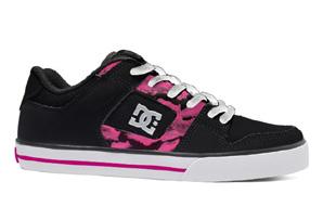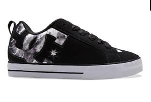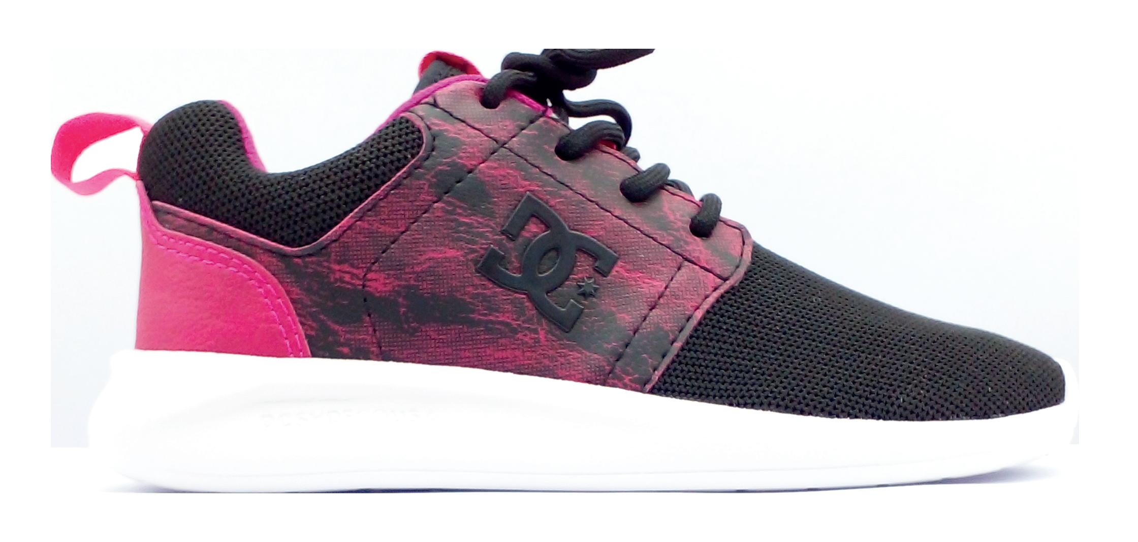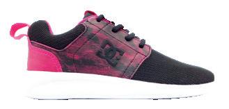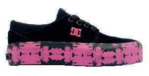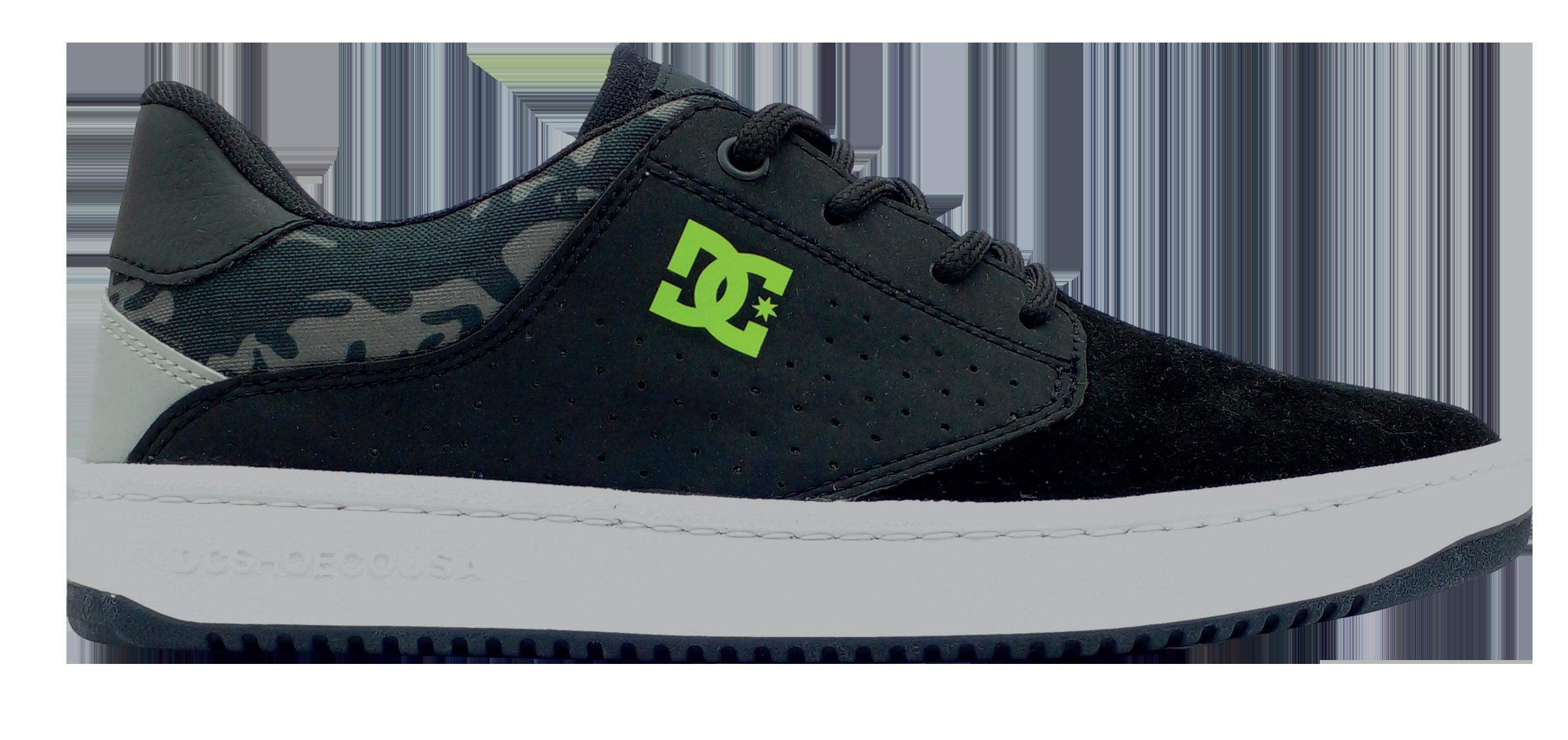 Capellada de textil sublimado + Logo lateral en relieve + Ojalillos metálicos + Construcción vulcanizada + Suela de caucho resistente a la abrasión + Diseño de pisada “Pill Pattern” de DC.