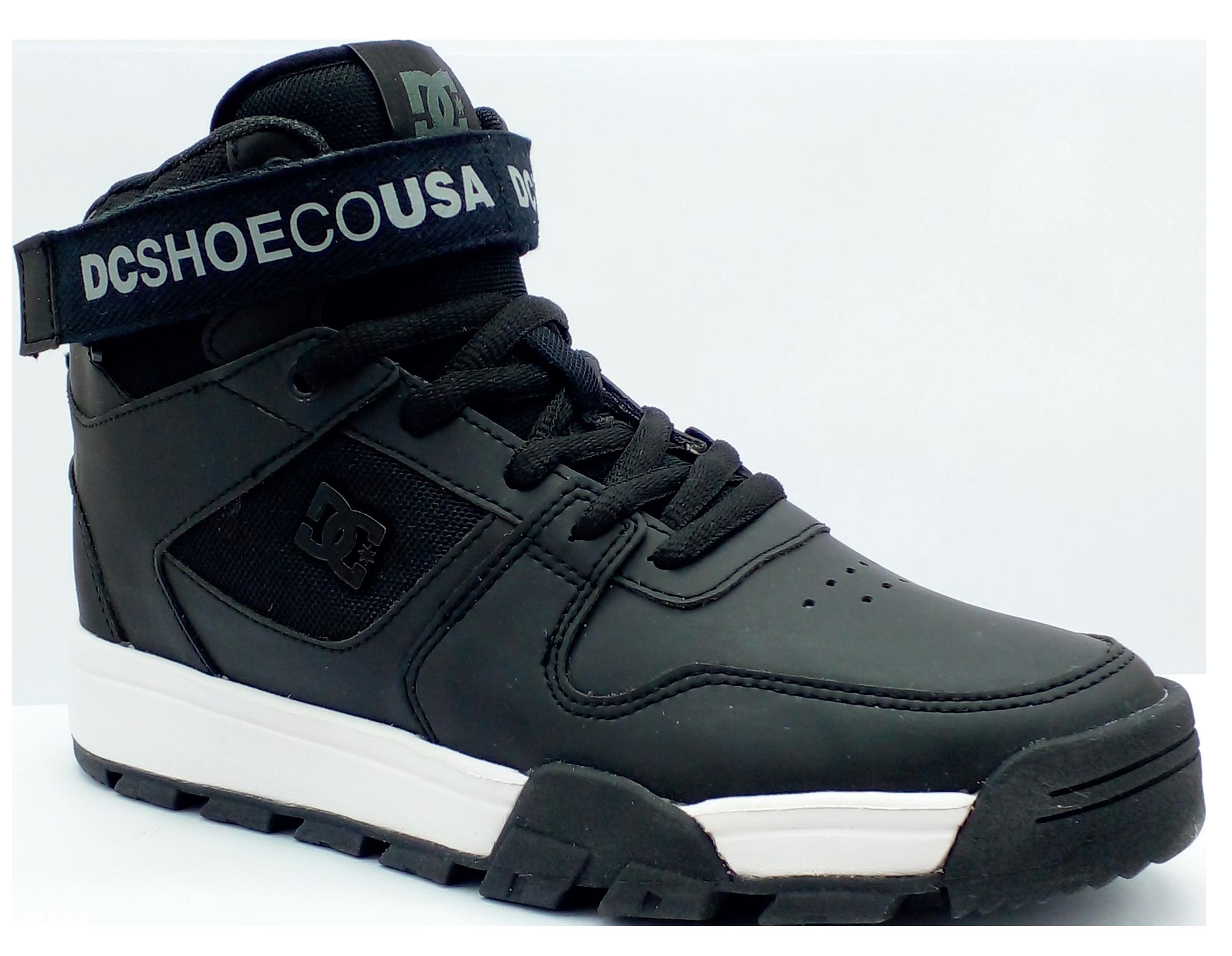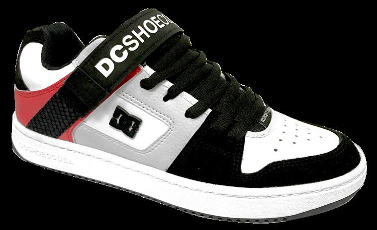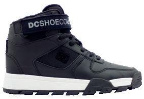 Capellada con cuero vacuno y/o sintético con tratamiento repelente al agua + Calzado de media caña que cubre el tobillo + Ajuste con velcro + Forrería liviana en lengüeta + Espuma y Cuello con espuma acolchada para máximo confort y soporte + Diseño Pill Pattern de DC en pisada + Nueva suela Cupsole con costura.
