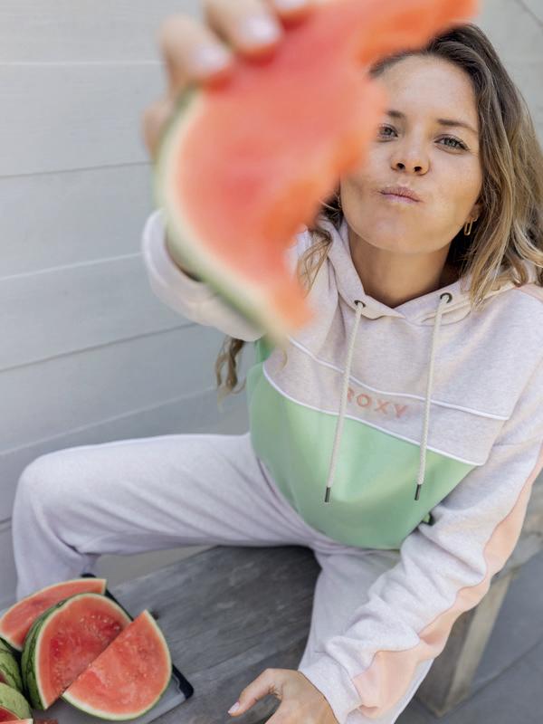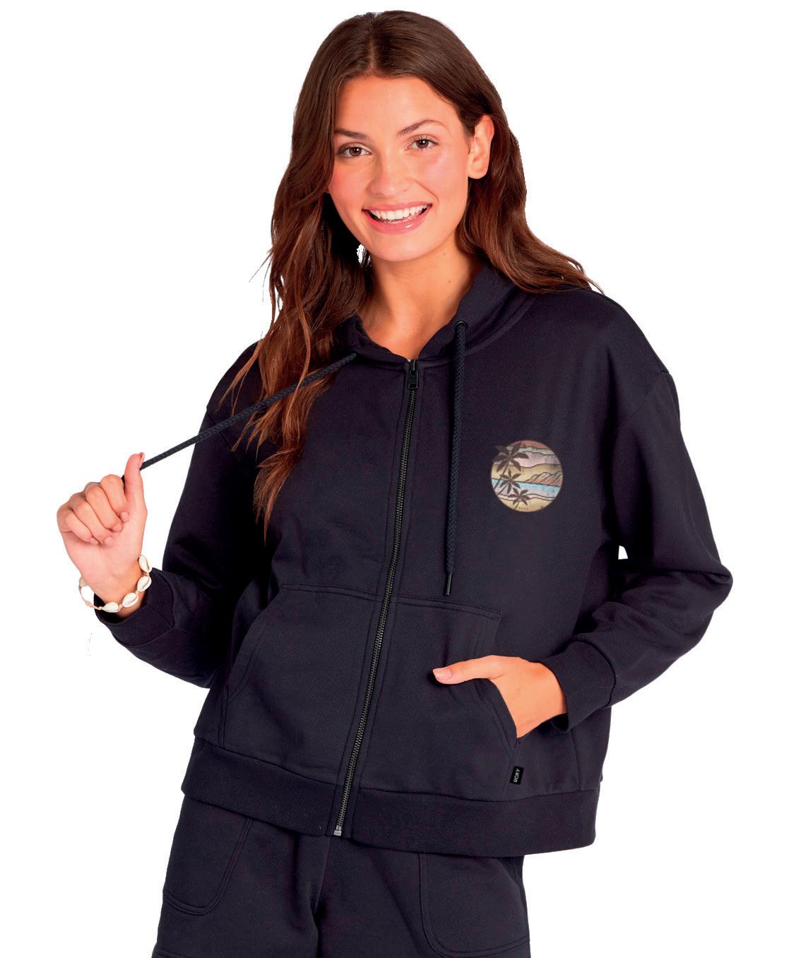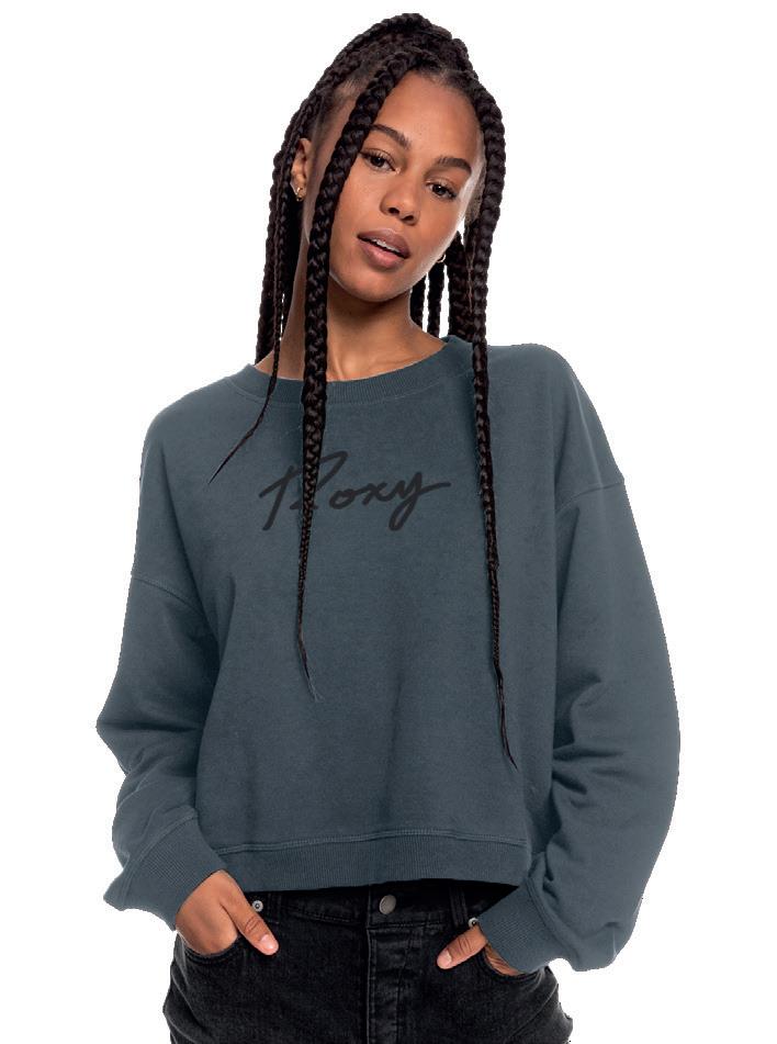 Tela: Frisa Pesada Fit: Regular • Arte en el frente gofrado 3D Avios Roxy.