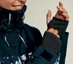 • D ryFlight® impermeable insertado T iras ajustables en las muñecas Cordón elástico S istema de guardado de mitón