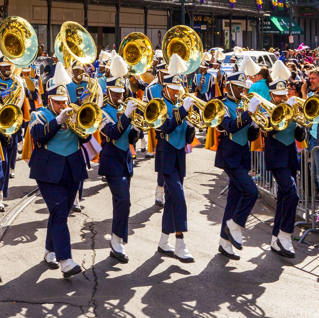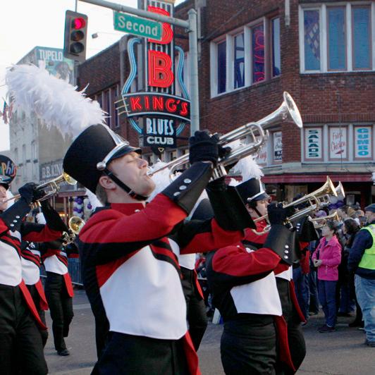 • March in the televised Sugar Bowl New Year’s Parade for 73,000+ spectators