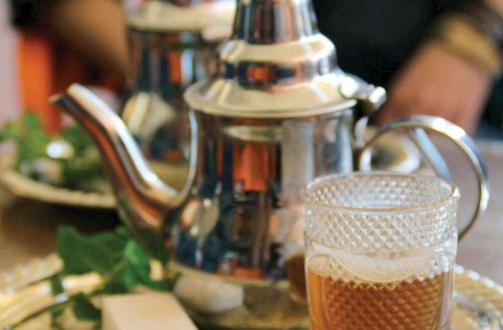 TeaistypicallyenjoyedintheMaghrebmannerin Morocco.Thegreengunpowderteaisbrewedstrong