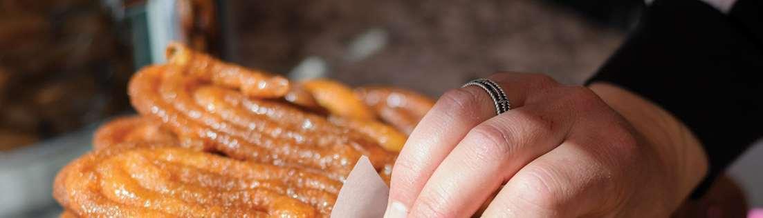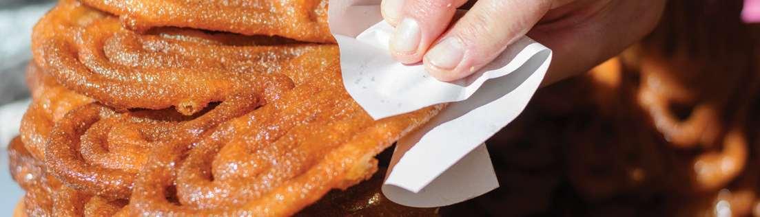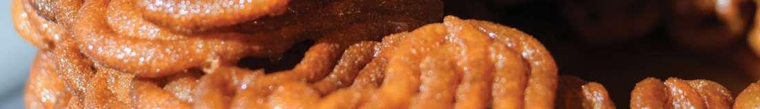STREETFOOD SweetTreats BAMBALOUNI isadoughnut-liketreatthatisdeep-fried anddustedwithsugar.It’sapopularbreakfastfood inTunisia,ofteneatenwithcoffee. is commonlysoldasastreetfoodbyvendorsinseaside towns,includingSousseandSidiBouSaid.