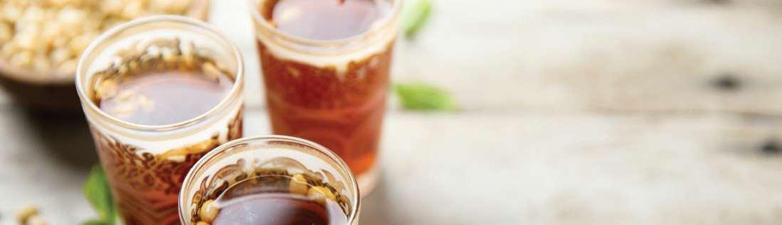 TEACULTURE HowIt’sEnjoyed TeaisanimportantelementofhospitalityinTunisia.Itisoften servedtoguestsinprivatehomes,andtorefuseisinsulting tothehost.Teaisalsoservedatmealtimesandenjoyedas refreshmentatmanypointsthroughouttheday.Theprocess ofservingteacantakeonanalmostceremonialformalityin Tunisia,especiallywhenofferedtoaguestinalocalhome. Itistypicallypreparedbythemaleheadofthehousehold. Threeglassesofteaarenormallyserved,andtheleavesare leftinthepotwhiletheteaisdrunk.Thelengthofsteeping timegiveseachcupadistinctivetasteandcharacter.Thetea issometimespouredintoglassesfromaheight,allowingsome loosetealeavestofallintothebottomofeachglass.Thiscan ithasapracticalpurposeaswell,namelyaeratingthetea,
