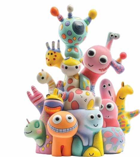 A bold mix of childhood innocence and surreal, worldly influences, it blends the playful modernism of the ‘50s and ‘80s with ecstatic absurdity, incorporating bizarre elements from global cultures, tribal art, and psychedelic patterns. This duality creates a surprising and personal aesthetic, o ering an emotional escape through joyful, imaginative self-expression.