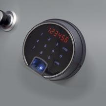 Locking – Fitted with an advanced high security fingerprint and touch panel lock. The lock can store up to 32 different fingerprints. The clear LED display also makes operating the lock extremely easy with a 4-16 digit user code. To further enhance security, the lock also features tamper lockout, internal alarm, dual control, hidden code and unlimited scrambled code and low battery indication as standard.