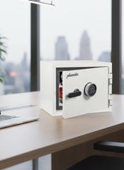 THE PHOENIX NEXT PLUS SERIES is a masterpiece in design, security and fire protection. Available in a range of stylish colour options using graphite grey and cream top and bottom door panels. It also features a slide and hide lock panel for extra security. The safe is ideal for modern office and homes when the need for discreet protection is required.
