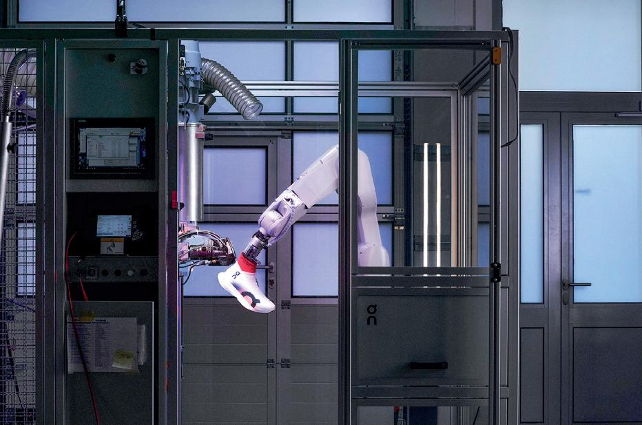 A robotic arm builds fine layers of midsole for On. The sportswear brand claims its ‘revolutionary’ process will enable nearshoring and faster speed to market.