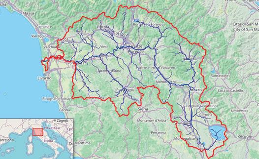 A map of the watershed of the River Arno.