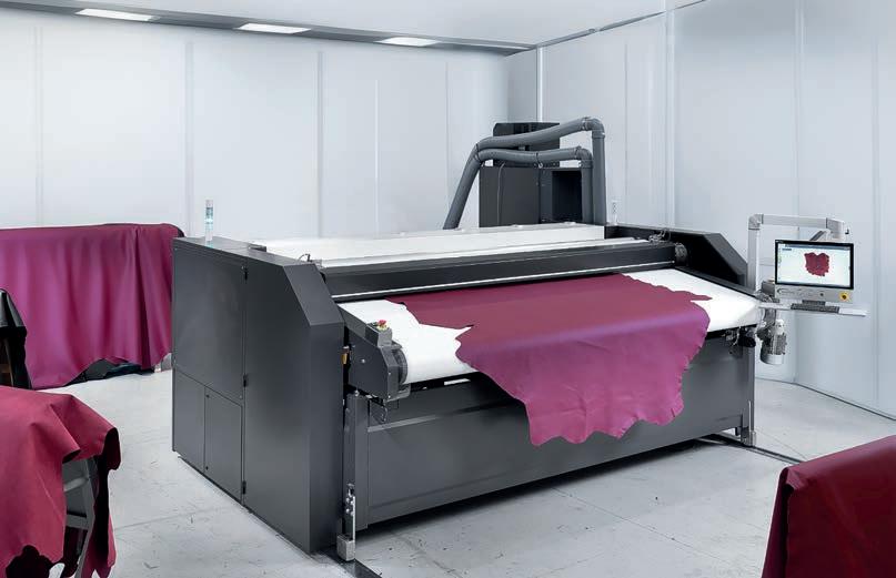 Interactive nesting, demonstrated with augmented reality glasses, allows for precise parts placement using softwareaided and manual methods. This technology is particularly effective on materials with treated, shiny surfaces. Zünd’s partnership with Mindhive Global aims to advance automated leather grading.