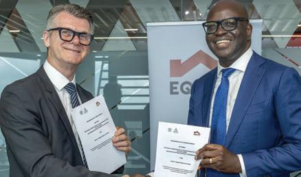 Assomac president, Mauro Bergozza (left), with the managing director of Equity Bank Kenya, Moses Nyabanda.