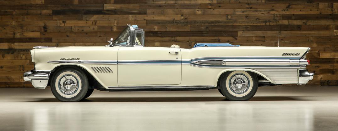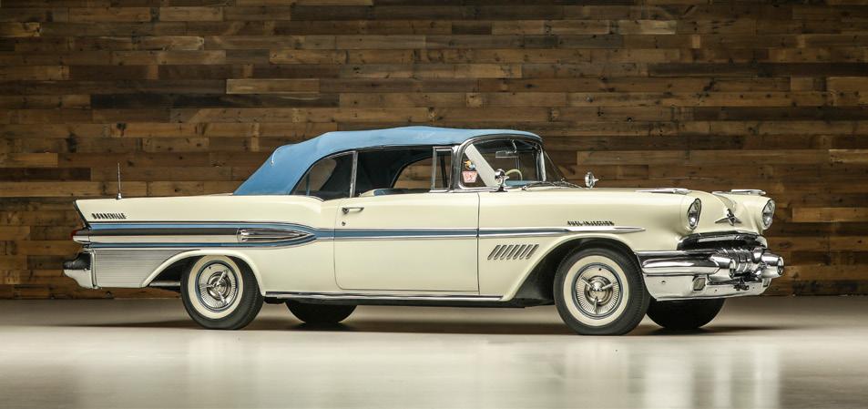 This was one of the last cars to come to Thomas Haag’s Toy Box collection, acquiring it in early 2020. This sleek Bonneville appears to have been treated to a top-shelf body-off-the-frame restoration where no detail was overlooked, and no short cuts were allowed. The application of the paint appears to be flawless, and the interior looks fresh and new, down to the proper style of carpeting on the floor. All of Bonneville’s standard features are in place and the under-hood appearance is factory fresh. Upon hearing this car start up, that mighty V-8 comes to life. Pontiac Bonneville convertibles are truly legendary. As special as they were when new, most of the original factory documentation seems to have been lost to the ages. Pontiac never officially released any performance information on the Bonneville’s power output with all published records being based on independent tests. The Bonneville helped to transform Grandpa’s brand into a performance machine just as Knudsen had hoped and this car was part of an era when Pontiac started to build excitement.