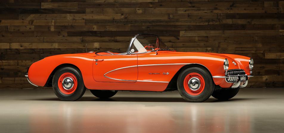 responded in stronger numbers selling nearly five times as many Corvettes in 1956 with 3,467 produced. Exterior changes for 1957 were pretty much undetectable. The big news was what was happening under the hood with the introduction of the larger 283-cubic-inch V-8. It was available in five flavors starting with 220 HP in base four-barrel form, with dual four-barrel carburetors rated at 245 HP or 270 HP based on hydraulic or solid lifters respectively, and the new Rochester mechanical fuel-injection system in either 250 HP or 283 HP in either hydraulic or solid lifter form. Corvette had accomplished the goal of creating one HP per cubic inch. The end results of these improvements saw nearly an 80 percent jump in sales for the 1957s; it ensured that the breed would survive for generations to come.