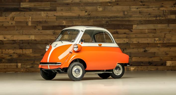 Renzo Rivlota was a brilliant engineer who headed up Isothermos, a major refrigerator company in Italy. In 1953, he developed the idea of building a small vehicle that would be an ideal around-town car. It was designed to carry a driver and passenger, be economical to buy, cheap to own and easy to maintain. Revealed at the 1954 Geneva Auto Show, the Isetta or “Little Iso” was unveiled, and great interest followed. They were somewhat practical and wellengineered and, in 1955, several Isettas took part in the Mille Miglia, easily winning their class. Seeing an opportunity to provide jobs and raise capital, BMW applied for and was granted a license to build the little car. Iso even provided much of the specialized tooling needed to get production rolling. In April 1955, BMW began production at their headquarters in Munich and keeping up with demand was a priority. BMW re-engineered much of the car, making it a