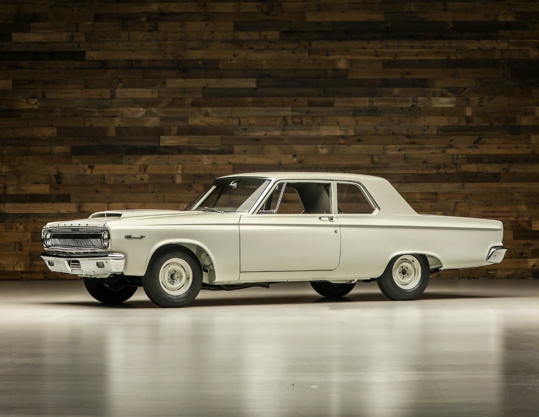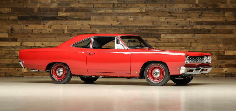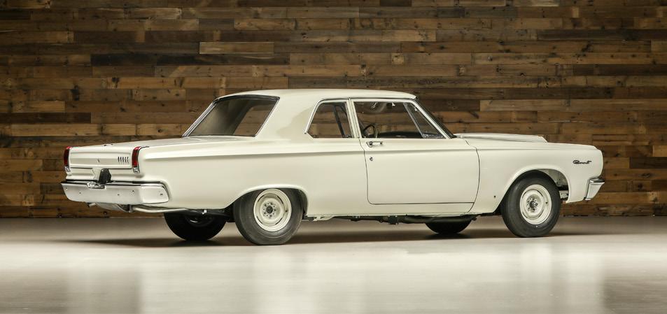 full rotisserie process which confirms that, despite its life as a competition vehicle, there were no signs of accidents. All body panels line up with the same care as when installed at the factory and the battery and full-size spare are mounted in the trunk. For those who would like to give the car the appearance of being race ready, the original velocity stacks and under-hood sheet metal are included in the trunk of the car. During ownership in the Thomas Haag Collection, this car was meticulously cared for. Of the 101 Dodge Coronet Super Stocks produced, only a handful have survived. It is believed that this example is the most factory-correct restoration and would be the centerpiece of any performanceoriented collection. Just for fun, imagine the thrill of being able to light those tires up just once.