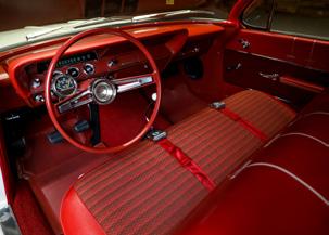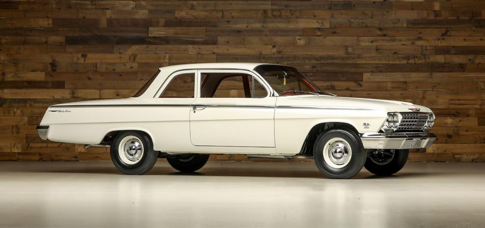 This superb two-door sedan was originally assembled at Chevrolet’s Kansas City facility in Missouri. While the details of its early life are not known, the quality of the finished product reveals that this must have been a solid car when the restoration was started. Today the majestic big-block V-8 engine, with the numbers matching engine block, looks fresher than it did when originally installed in this car back in March 1962. The dual Carter AFB carburetors are clean and fresh with the entire engine bay presented in show-car condition. Nothing was overlooked including the factoryapplied stickers and even the radiator warning tag. Behind this massive engine is the Borg-Warner T-10