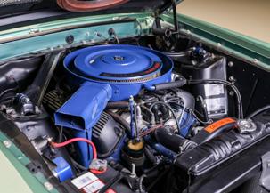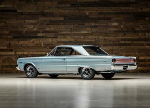 more. On the performance side, the 273-cid V-8 engine was standard with several larger V-8s as options. But for the performance-minded, there was the mighty H-Code 426-cubic-inch Hemi V-8. 1966 was the first time that Plymouth had coded the factory-installed engine in the car’s serial number and, that year, H was for Hemi. This beautiful Satellite two-door hardtop came out of the Pacific Northwest and entered Thomas Haag’s Toy Box in early 2015. Stunning in every way, this powerful Plymouth had been treated to a no-expense-spared top-shelf restoration. Finished in show-quality Light Blue Metallic, its original color, it included a base coat and clear coat with the same care given to the undercarriage as the exposed body panels. All chrome and bright trim work was restored or replaced, again to show-car quality. Interior appointments were brought up to new-car standards with premium color-coordinated vinyl coverings, bright chrome work, and fresh gauges. Extensive research was completed and a copy of the original IBM order card for this car was obtained from Chrysler Historical Services. The original fender tag confirms the Light Blue Metallic finish, as well as other items such as the interior, accessories, and the drivetrain which are very important to this car’s heritage. Seeking perfection in the build, this mighty engine was sent to Moffitt & Bratton Racing Engines in Boise, Idaho, where it was equipped with the
