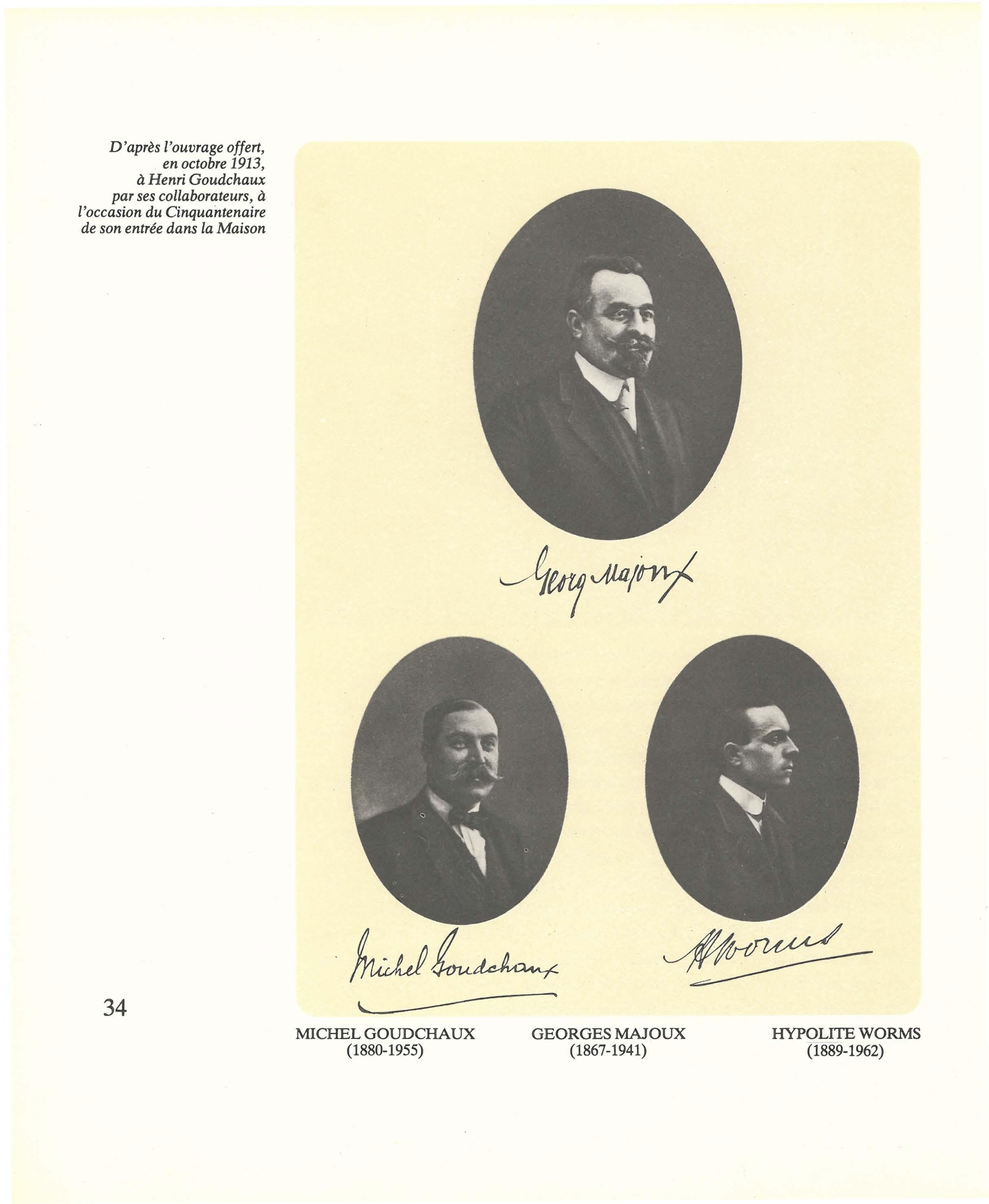 Paul Rouyer depuis 1896, Michel Goudchaux, son fils, et Hypolite Worms, petit-fils du fondateur, depuis 1911. Georges Majoux devait les rejoindre en 1916, après la mort d'Henri Goudchaux.