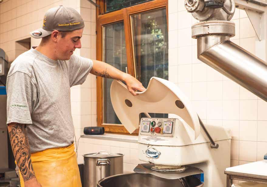 Wenn aber gleich 15 Brotsorten in bester Qualität, auf engem Raum pünktlich fertig werden sollen, kommt es auf ein optimales Zusammenspiel im Bäckerteam an.