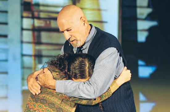 Anne Frank, played by Julia Mary Kaufman, sought comfort in the arms of her father, Otto, played by Paul Thompson.