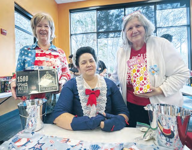 The swap began with a raffle. Afterward, Marcea Oetting, dressed as Abigail Adams for the Presidents Day theme, called numbers like Bingo, but instead of marking numbers on a card, each number represented a person. Once someone’s number was called, the puzzler was able to go search the numerous puzzles and pick one to take home.