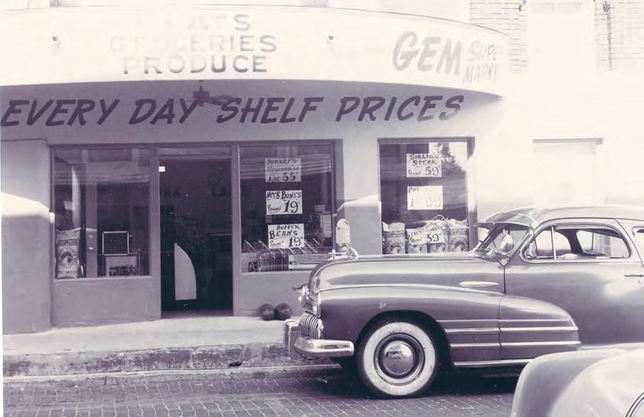 In the 1950s, the Gem Supermarket operated at 31 S. Main St. in Winter Garden. The building was constructed around 1915 and originally housed the Mann & Mills grocery store. It acquired its eye-catching marquee during World War II. Throughout the war, the 352nd Anti-Aircraft Artillery Battalion was stationed in Winter Garden, and hundreds of soldiers roamed the town’s streets. Seeking entertainment, many of them attempted to buy tickets at the Garden Theatre, only to find the shows were sold out. To meet this excess demand, Charlie M. Biggers opened the Gem Theatre. A marquee, projection booth and seating were added to the existing structure. At the opening night, the movie “The Dark Command” (1940) starring John Wayne was screened. At war’s end, the soldiers departed and there no longer was any need for two theaters in downtown Winter Garden. However, the subsequent owners of the building kept the marquee and used the name “Gem” for their store. The projection booth also still exists within the building.