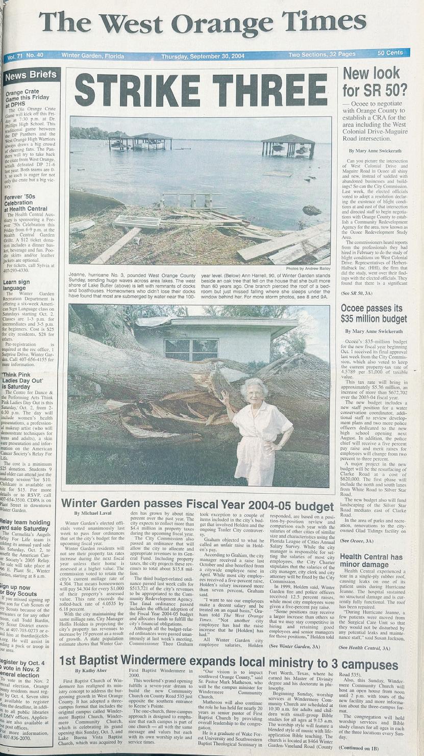 First Baptist Church Pastor Tim Grosshans 125 E. Plant St, Winter Garden (407) 656-2352