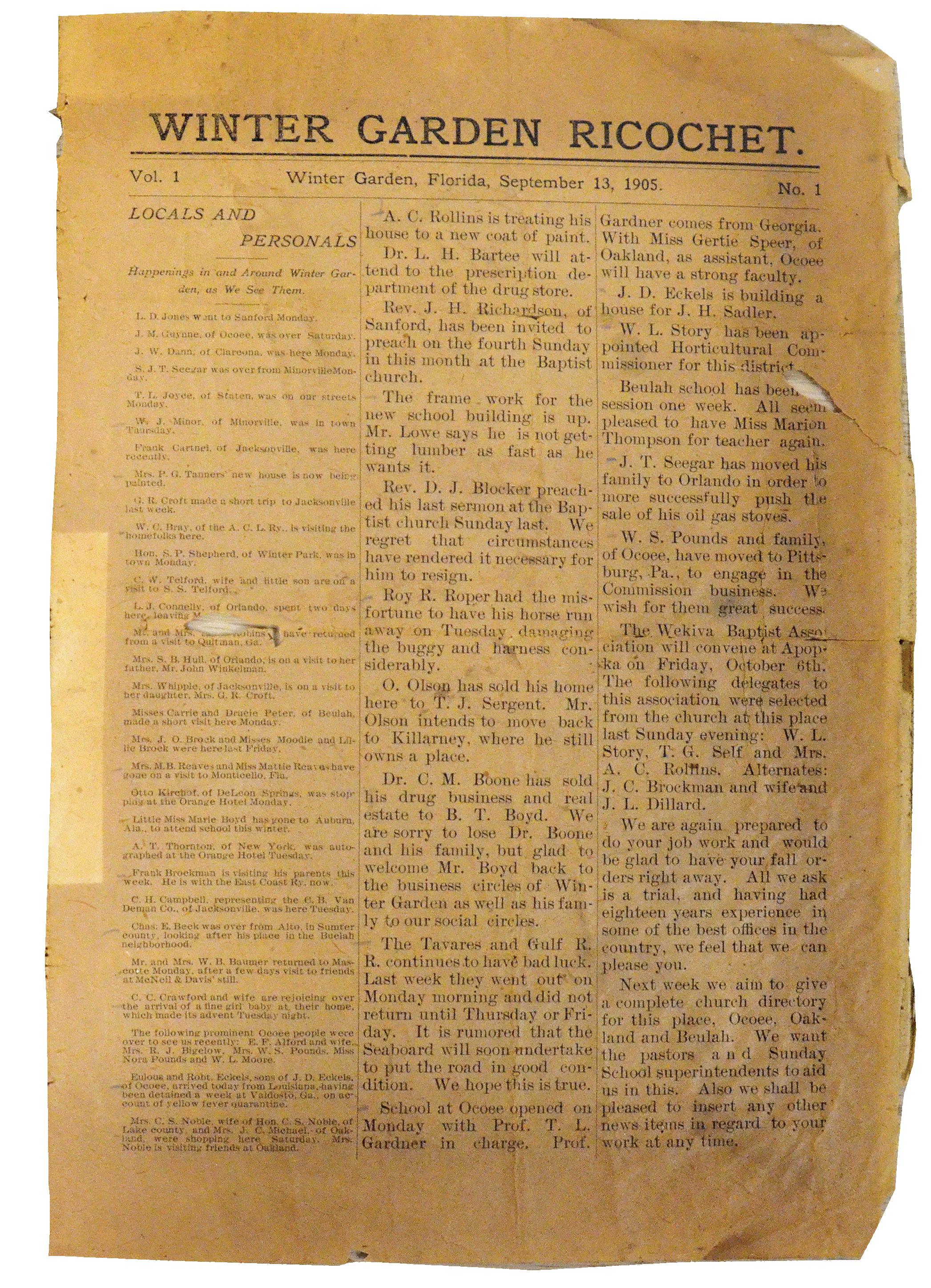 A.B. Newton started The Ricochet newspaper in Winter Garden.