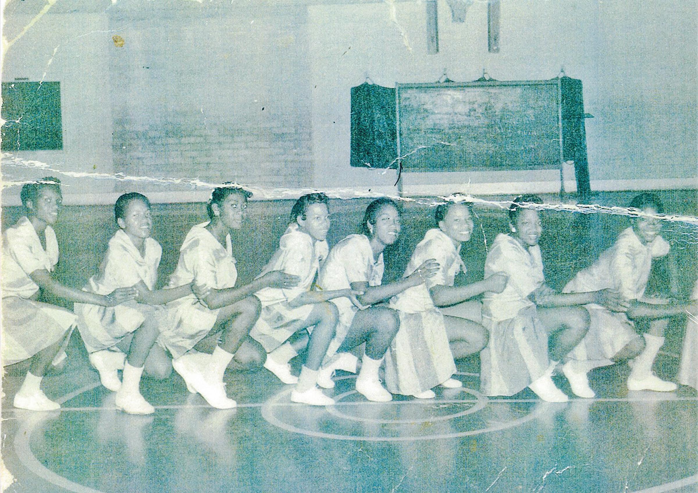 In this photograph shared by Rhonda Massey Steib, eight Charles R. Drew High School cheerleaders are shown practicing their drills. The school served black students from 1957 until 1969, when the era of segregated schools officially ended in Orange County. Ready to cheer on their team are Doretha Gaffery, left, Viola Jones, Christine White, Patricia Brooks, Cassie Jones, Bernice King, Delois Bouler and Erlene Riley.