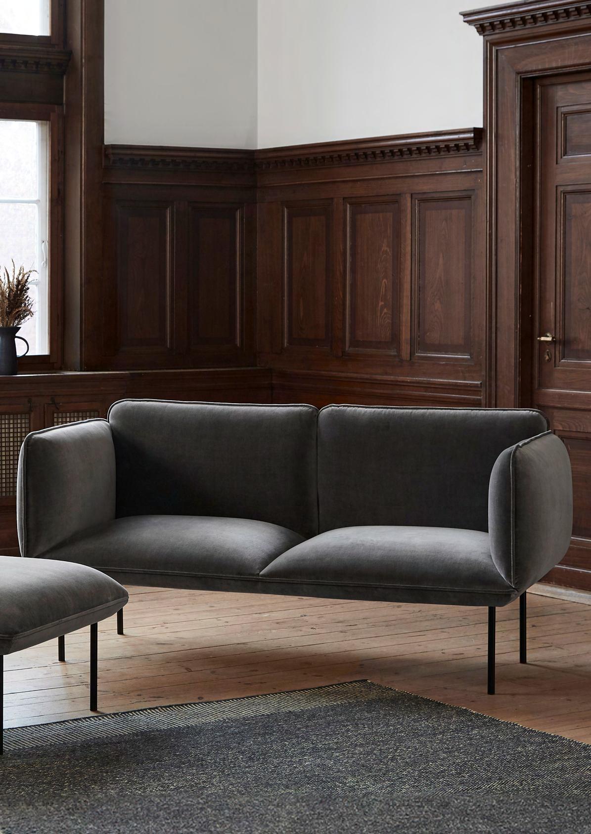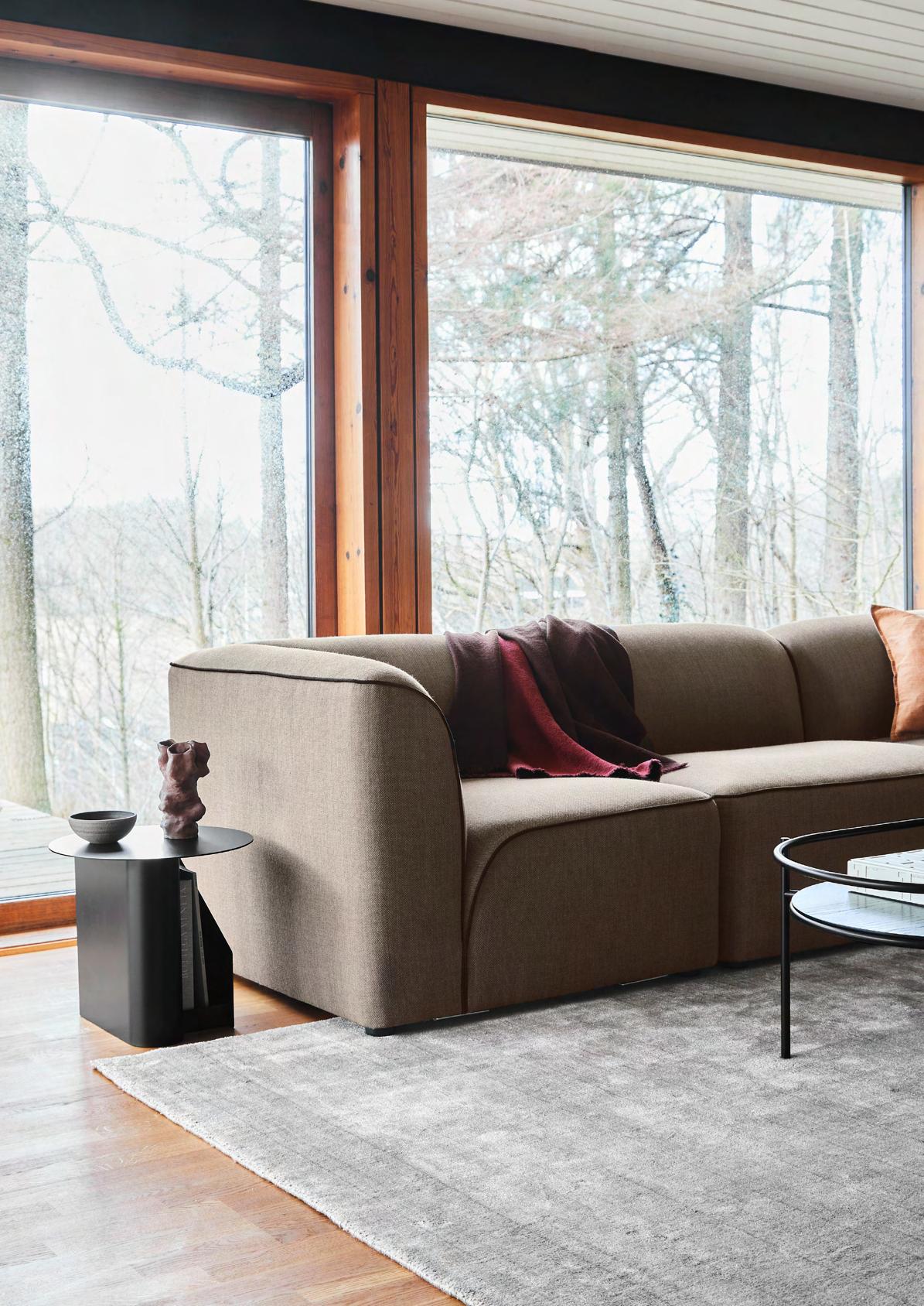 Using voluminous curves and askew arranged back cushions, Collar reinterprets classic sofa design into a contemporary appearance. Delta shaped sides perfectly support the cushion in a wide-angle for comfortable lounging. Combined with the low backrest, the continuous back cushion functions like a collar and when sinking into the carefully selected soft memory foam, you achieve the feeling of a soft and deep hug. Creating a comfortable hideaway.