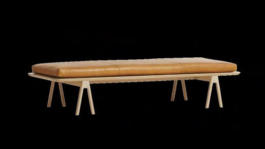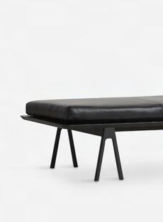 Level is made from high-quality materials. The daybed uses the iconic form of sawhorses in the simplest arrangement possible: A sheet laid across a pair topped with a rectilinear mattress. Combine the white pigmented or black painted oak frame with your prefered leather or fabric mattress to make it a perfect match for you.