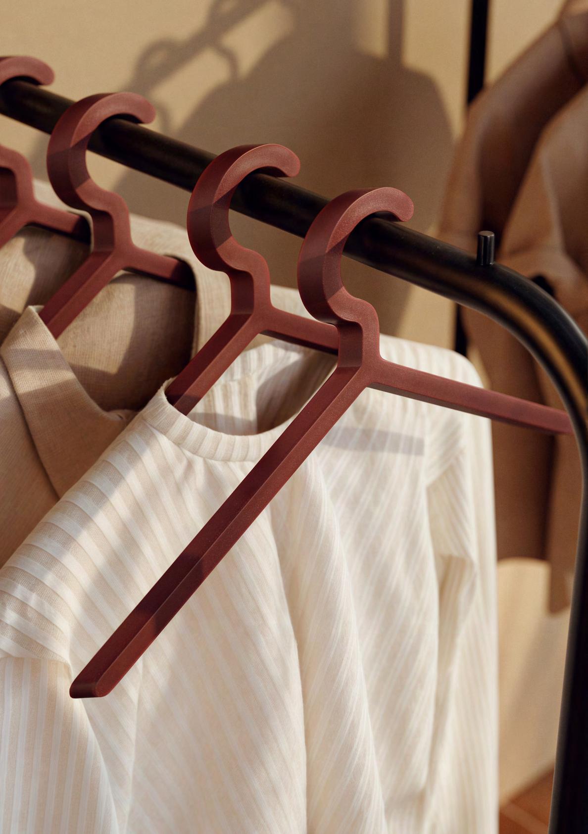 The Illusion hanger is designed to create an illusion formed by its oblique angles. Challenging your eye. The shape will vary significantly depending on the angle you look at it. Slowly, the Illusion hanger will swing into a diagonal order, which creates an elegant and harmonious group of hangers, presenting the clothes and jackets in a nice way.