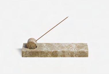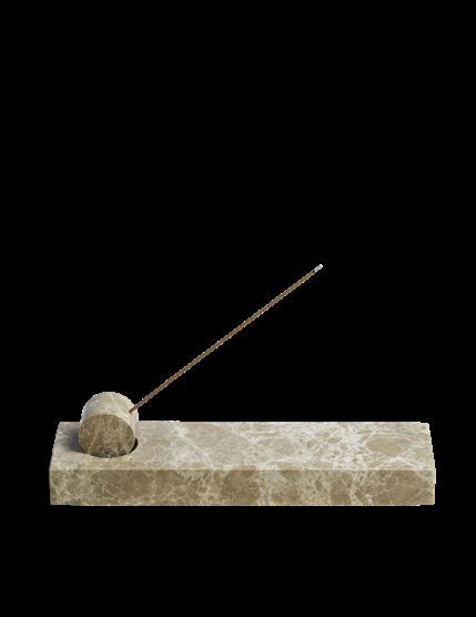 Designed with the HIDN design approach in mind, the cylindrical holder is directly cut from the block, leaving a hollow centre to vertically place the cut marble piece. Furtermore, clever use of counterweight and friction holds the incense sticks at the perfect angle to ensure ashes from longer sticks do not miss the plate.