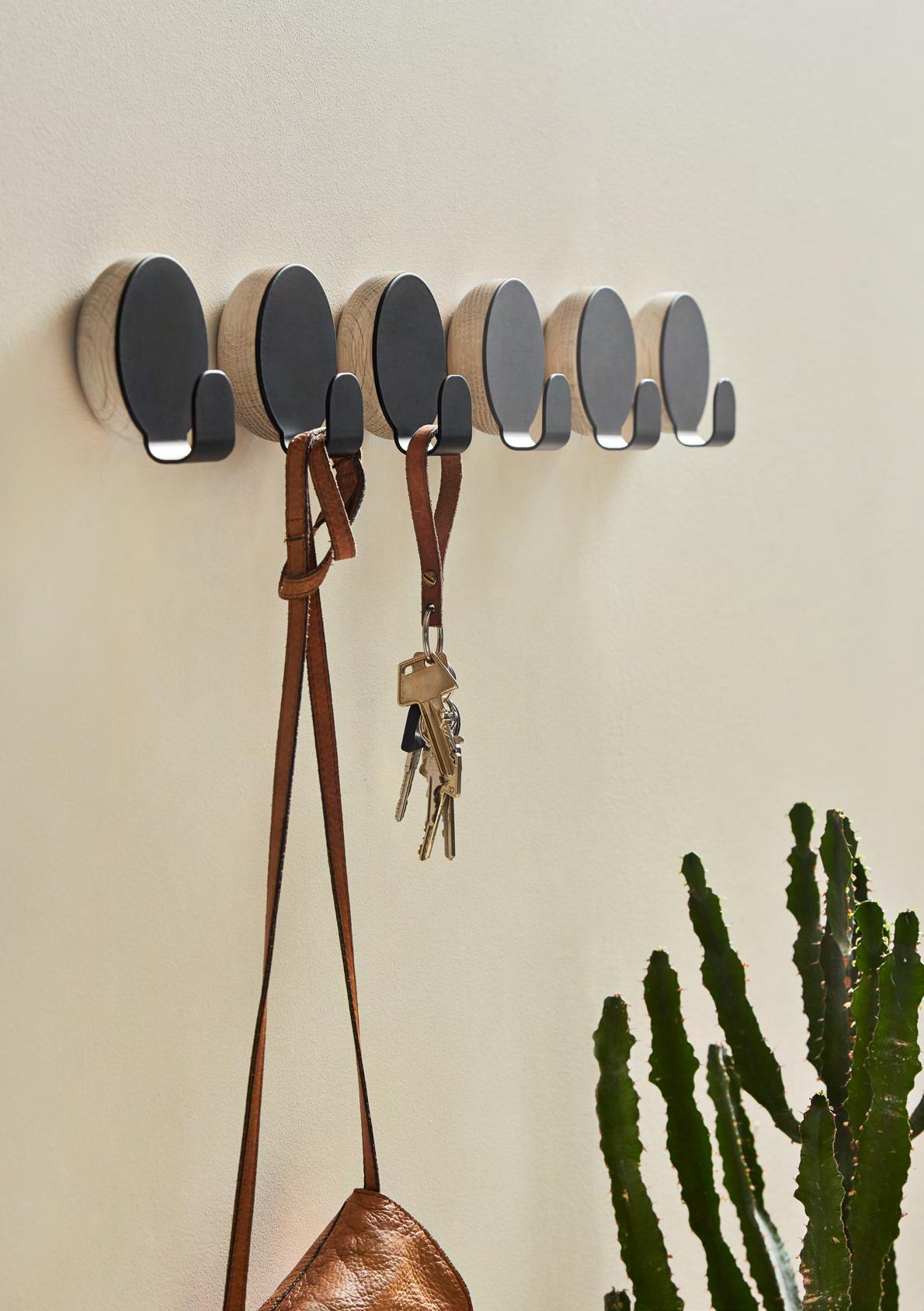 With its round shape and uncomplicated design, Haak blends aesthetic appeal and practicality. The elegant pairing of a sturdy metal hook with the warmth of oak wood provides a versatile solution for hanging items like hangers, bags and jackets. Its sleek and clean-lined design makes it a perfect fit for hallways or bedrooms, infusing a sense of sophistication.